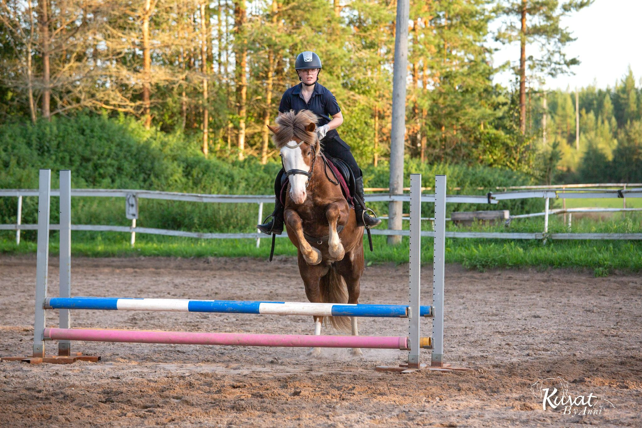 Tallin mummoponi Karkki on iästään huolimatta yksi tallin energisimmistä hevosista. Karkki rakastaa tehdä töitä ja ikä ei tässä ponissa ole vielä päivääkään painanut. Energiatasot kun tuntuvat vain kasvavan iän kanssa samaa tahtia! Karkki on herkkä, mutta kuitenkin valtavan kiltti. Karkki kuljettaa pienet ratsastajat sievästi, mutta esteillä se on kuin mikäkin nuori estetykki:D Karkin nuorin varsa Molly asustaa myös saman katon alla Karkin kanssa ja Molly onkin ainut asia, mikä välillä huojuttaa Karkin seesteistä maailmankuvaa. Karkki saa jatkaa tuntihommia vielä niin pitkään, kunnes Molly pystyy sen viran täyttämään, mikäli mummoponin terveys sen sallii <3